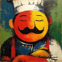 Koop dit abstracte kunstwerk Vrolijke Chef | Chef with Joyful Expression van OMG Art als print op canvas, aluminium dibond, (ingelijste) fotoprint, behang en ArtFrame. Voor jou op maat geprint in Fine-Art kwaliteit.