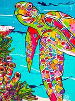 Kleurrijke schildpad onderwater van de kunstenaar Renate Rolefes.