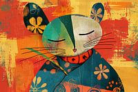 Breng een vleugje kleur en vrolijkheid in je interieur met dit unieke kunstwerk van een ontspannen kat, omringd door levendige bloemen en abstracte patronen. Dit speelse ontwerp, geïnspireerd door de stijlen van Art Deco en Popart, combineert levendige kleuren en geometrische vormen om een unieke sfeer van vreugde en sereniteit te creëren. Perfect voor een slaapkamer, keuken of elke ruimte die een sprankeling van leven nodig heeft. Dit kunstwerk brengt niet alleen kleur, maar ook een gevoel van warmte en vreugde in huis, ideaal voor iedereen die van moderne kunst met een vrolijke twist houdt.