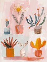 Vrolijke botanische stillevens, illustratie. Terracotta, bohemian stijl. Kies zelf het formaat en materiaal bij dit moderne werk en maak er een echte blikvanger van voor jouw interieur. Helemaal van nu!