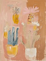 Vrolijke cactusfamilie, illustratie. Terracotta, bohemian stijl. Kies zelf het formaat en materiaal bij dit moderne werk en maak er een echte blikvanger van voor jouw interieur. Helemaal van nu!