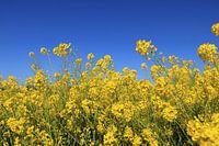 Vrolijke geel bloeiende lente bloesem tegen een achtergrond van blauwe lucht. Tegengekomen in de buurt van Elst, Gelderland, Nederland.