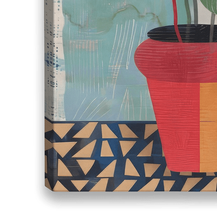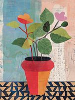 Vrolijke en hippe illustratie van een plant in een pot. Dit werk fleurt ieder interieur op! Haal sfeer in huis met een plant die je geen water hoeft te geven.
