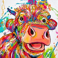 Kleurrijke en vrolijke koe van de kunstenaar Renate Rolefes.