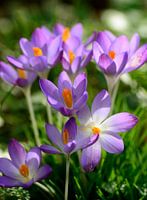 Een close-up foto van lila krokussen in mijn tuin. Eindelijk weer kleur in de tuin en een teken dat voorjaar er weer aankomt.