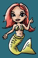 Vrolijke illustratie van een zeemeermin meisje. Deze gekleurde print is leuk voor bijvoorbeeld een meisjes kinderkamer.