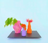 Vrolijke kunstzinnige ,kleurrijke vaasjes met mooie structuren en kleurrijke bloemen in pop color .
