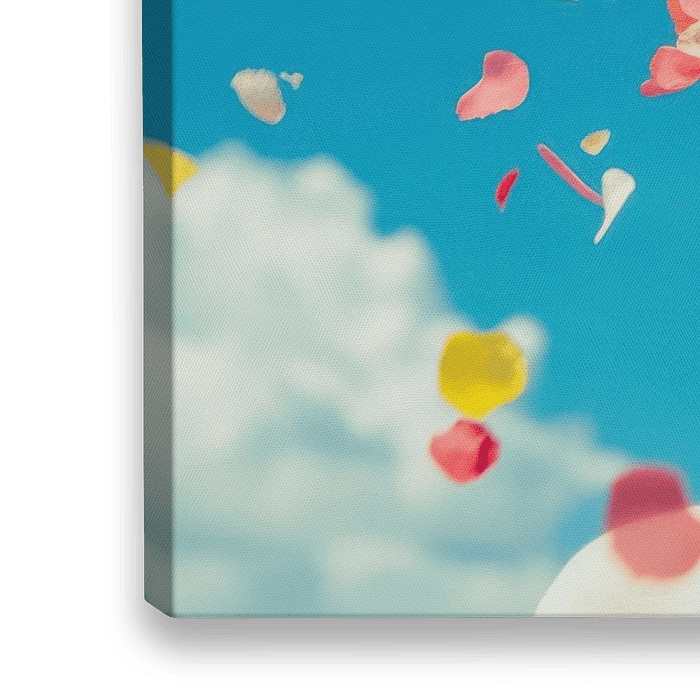 Een explosie van kleur, bloemen en zomergevoel: deze afbeelding van een vrouw met een bloemenhoed en spiegelende zonnebril straalt plezier uit. De blauwe lucht, de zwevende bloemblaadjes en het speelse lichtspel maken dit beeld ideaal voor mensen die op zoek zijn naar een positieve vibe aan de muur. Het past perfect in een creatief…