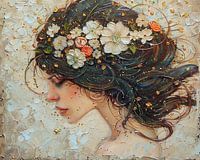 Vrouw 570 | Natuur - Schilderij Vrouw Bloemen Haren