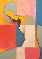 Details: abstract, vrouw, minimalistisch, schilderij, moderne kunst, kleuren, geel, roze, rood, blauw