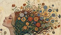 Vrouw Bloemen | Modern - Schilderij Vrouw | Portret Vrouw