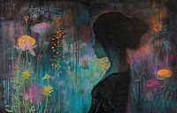 Koop dit landschapskunstwerk Vrouw Bloemenportret | Mystic Bloom Silhouette van Kunst Kriebels als print op canvas, aluminium dibond, (ingelijste) fotoprint, behang en ArtFrame. Voor jou op maat geprint in Fine-Art kwaliteit.