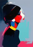 Details: vrouw, silhouet, abstract, modern, portret, rood, blauw, zwart, wit,