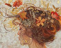 Vrouw Impressionisme | Haren - Vrouw Schilderij | Portret Vrouw Bloemen