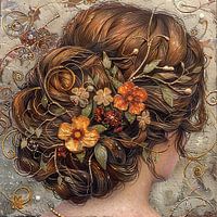 Vrouw Impressionisme - Vrouw Schilderij | Portret Vrouw Bloemen