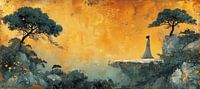Koop dit landschapskunstwerk Vrouw Klif Zonsondergang | Amber Solitude Awaits van Kunst Kriebels als print op canvas, aluminium dibond, (ingelijste) fotoprint, behang en ArtFrame. Voor jou op maat geprint in Fine-Art kwaliteit.
