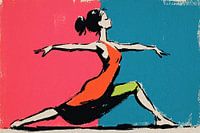 Details: vrouw, yoga, schilderij, energie, rode jurk, roze, blauw, beweging, kracht,…