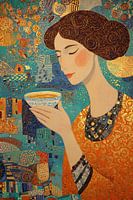 Koop dit schilderij Vrouw Met Kopje van Zen en Meer als reproductie geprint op canvas, aluminium dibond, (ingelijste) fotoprint, behang en ArtFrame. Voor jou op maat geprint in Fine-Art kwaliteit.