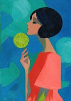 Details: vrouw, lime, groene schijf, blauw, groen, moderne kunst, elegant, portret, frisse…