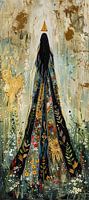 Details: vrouw, portret, mystiek, natuur, bloemen, goud, zwart, wit, groen