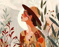 Details: vrouw, profiel, natuur, bladeren, aardetinten, hoed, abstract, modern, art deco, silhouet, Natuurlijk wonen
