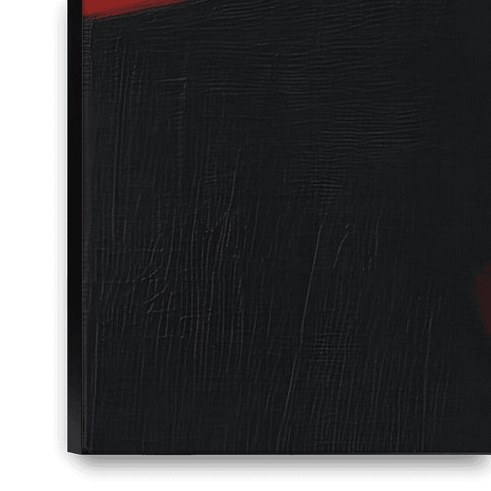 Details: vrouw, minimalistisch, rood, zwart, schilderij, portret, moderne kunst, canvas, lippen, mysterieus