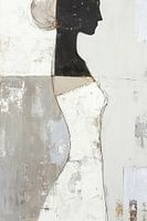 Vrouw Silhouet | Grace in Monochrome - Dit abstracte vrouwen schilderij belicht een elegant silhouet van een vrouw in profiel, omhuld door neutrale en aardse tinten met texturele diepte en subtiele contrasten.