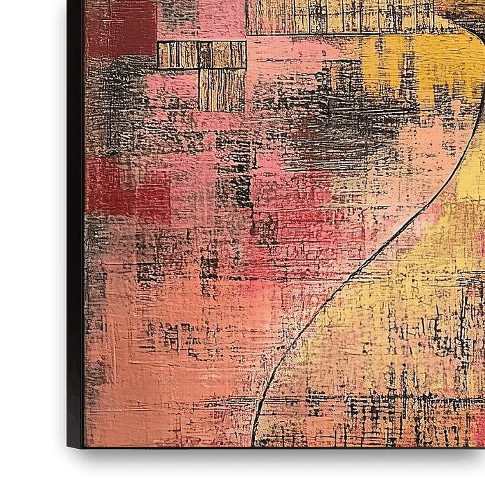 Details: abstract schilderij, vrouw schilderij, modern kunst, silhouette, roze, geel, zwart, kleur, vrouwenportret, hedendaagse…