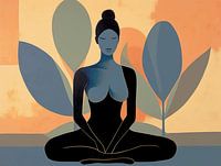 Een minimalisch beeld van een vrouw in Zen houding. Spiritueel in warme aarde tinten. Eenvoud en rust
