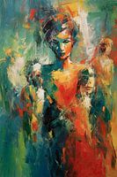 Dit abstracte werk toont de vrouwelijke vorm op een unieke en expressieve manier. De vloeiende lijnen en de speelse kleuren creëren een dynamisch beeld dat de essentie van vrouwelijkheid vastlegt. De combinatie van abstracte elementen en subtiele details nodigt de kijker uit om zijn of haar eigen interpretatie te geven, waardoor het een intrigerend gespreksonderwerp is in elke ruimte. Perfect voor een moderne inrichting, voegt dit werk een vleugje creativiteit en verfijning toe aan uw interieur.