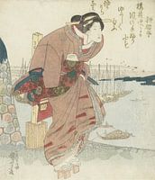 Vrouw bij een haven, Utagawa Kuniyoshi, ca. 1825 - ca. 1830 Utagawa Kuniyoshi, Japanse kunst ukiyo-e van Dina Dankers