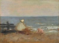Vrouw en kind bij de zee, Étretat, Jean-Baptiste-Camille Corot