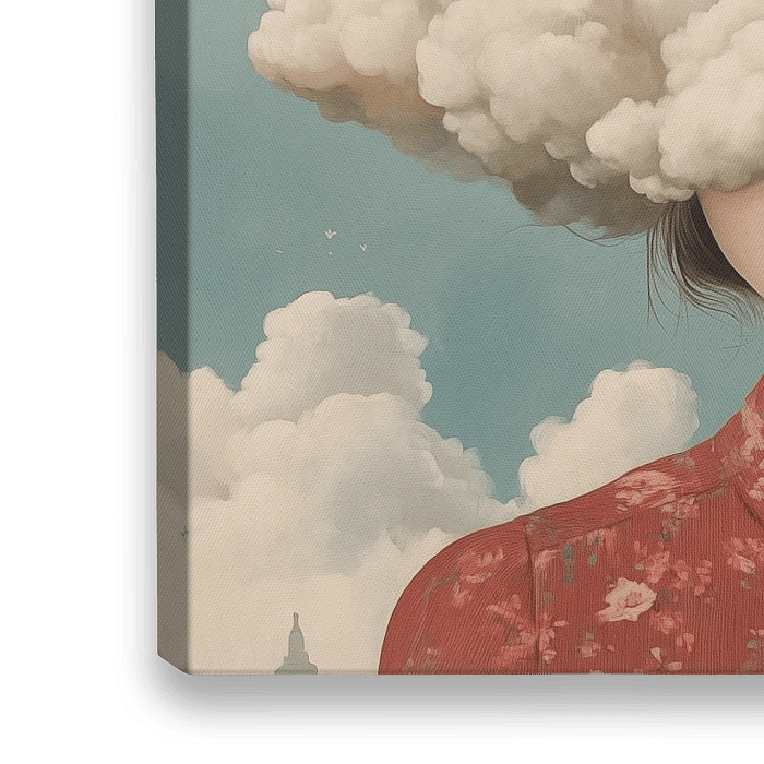 Koop dit bloemen kunstwerk Vrouw hoofd in de wolken surrealistisch surrealisme van TheXclusive Art op canvas, aluminium dibond, (ingelijste) fotoprint, behang en ArtFrame, op maat geprint in Fine-Art kwaliteit.