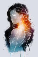 Ontdek de essentie van minimalisme en abstractie met dit stijlvolle ontwerp. De subtiliteit van de witte lijntekening die een vrouwelijke silhouet onthult, contrasteert prachtig tegen een achtergrond van levendige kleuren en dynamische vormen. Het gebruik van koele blauwe en warme oranje tinten brengt een zeldzame harmonie die zowel energie als rust uitstraalt. Dit kunstwerk spreekt tot de verbeelding en is perfect voor de moderne woonkamer of een creatief kantoor. Het voegt een unieke touch toe aan elke ruimte en is ideaal voor diegenen die hun liefde voor kunst en design willen tonen. Laat je inspireren door de eenvoud en complexiteit die dit stuk te bieden heeft.