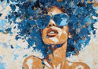 Details: vrouw, zonnebril, portret, blauw, beige, stijlvol, modern, textuur, schilderij, dynamisch, Modern Chic