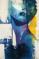 Details: abstract schilderij, vrouw schilderij, vrouw, blauw, geel, moderne kunst, portret, minimalistisch, schilderij vrouw, abstract portret.