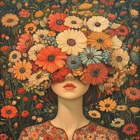 Vrouw in bloemen zachte kleuren van TheXclusive Art