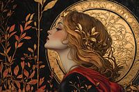 Op Alphonse Mucha geïnspireerd schilderij van een vrouw in de herfst