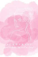 Dit kunstwerk combineert een vrouwelijk persoon met de mooie herinnering "Schoonheid - begint in je hoofd, niet in de spiegel". Dit ontwerp is bedoeld om je te inspireren om meer sereen te zijn met jezelf en je uiterlijk en je eraan te herinneren dat je perfect bent zoals je bent.