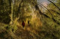 Vrouw maakt een wandeling in het bos abstracte dubbele belichting