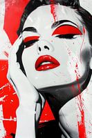 Portret van een vrouw in zwart-wit en rood.