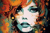 Vrouwengezicht uit de jaren 60 in mixed media met vele kleuren