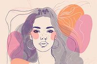Dit moderne lijntekeningportret van een vrouw komt tot leven met levendige kleuraccenten in paars, oranje en roze. De vloeiende lijnen en gekleurde vlakken benadrukken de expressieve gelaatstrekken en het lange, golvende haar. Dit kunstwerk is ideaal voor moderne woonruimtes, kantoren of galerieën en is perfect voor liefhebbers van moderne en minimalistische kunst die op zoek zijn naar een stijlvolle en opvallende wanddecoratie.