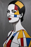 Ontdek een modern eerbetoon aan het klassieke kubisme met dit levendige portret van een vrouw. Haar gelaatstrekken zijn geschilderd met een monochrome finesse, terwijl geometrische blokken in primaire kleuren speels haar kenmerken accentueren. De heldere lijnen en gewaagde contrasten dansen over het canvas en creëren een stuk dat zowel de verfijning van de moderne kunst weerspiegelt als een knipoog is naar de abstracte grootmeesters. Dit kunstwerk is een opvallende toevoeging aan elke hedendaagse ruimte, waar het zeker gesprekken zal uitlokken en de aandacht zal trekken.