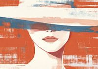 Vrouw meditatie - In dit vrouwen schilderij zie je een vrouw met een gedeeltelijk bedekt gezicht, omgeven door warme en aardse kleuren zoals terracotta en blauw, waardoor een gevoel van rust en meditatie ontstaat.