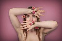 Deze intrigerende beeldbewerking toont een vrouw waarbij bloemen uit haar aderen lijken te komen, een krachtig symbool van de strijd voor vrede en schoonheid. De bloemen, die vanuit het bloed ontspruiten, geven de foto een unieke en complexe uitstraling. Dit beeld laat zien dat vrede niet altijd de weg van de minste weerstand is en dat schoonheid vaak gepaard gaat met pijn en inspanning. De zachte tinten in de foto voegen een charme toe die het geheel aantrekkelijk maakt om naar te kijken, ondanks de oncomfortabele indruk die het kan wekken.