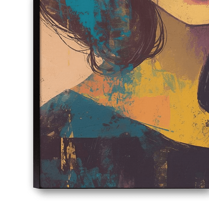 Details: vrouwenportret, kleurrijk, modern, abstract, gezicht, blauw, geel, rood, zwart, bruin
