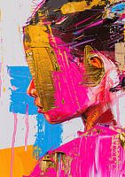 Koop dit abstracte kunstwerk Vrouw met Kleuren | Vrouw Goud van Kunst Kriebels als print op canvas, aluminium dibond, (ingelijste) fotoprint, behang en ArtFrame. Voor jou op maat geprint in Fine-Art kwaliteit.