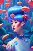 Deze prachtige en grillige portretillustratie van een vrouw met paddenstoelen is de perfecte toevoeging aan je leven. De illustratie is een geweldig kunstwerk dat elke ruimte zal opfleuren.