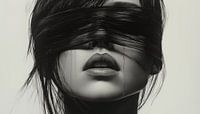 Vrouw met blinddoek zwart - wit artistiek panorama panorama schilderij die een prachtige luxe toevoeging zal zijn aan elke ruimte. Met zijn unieke en stijlvolle uitstraling is het een ware eyecatcher. De schitterende kleuren en het bijzondere ontwerp maken dit kunstwerk 100% uniek en origineel. Het is de perfecte fotoprint om je interieur helemaal af te maken.